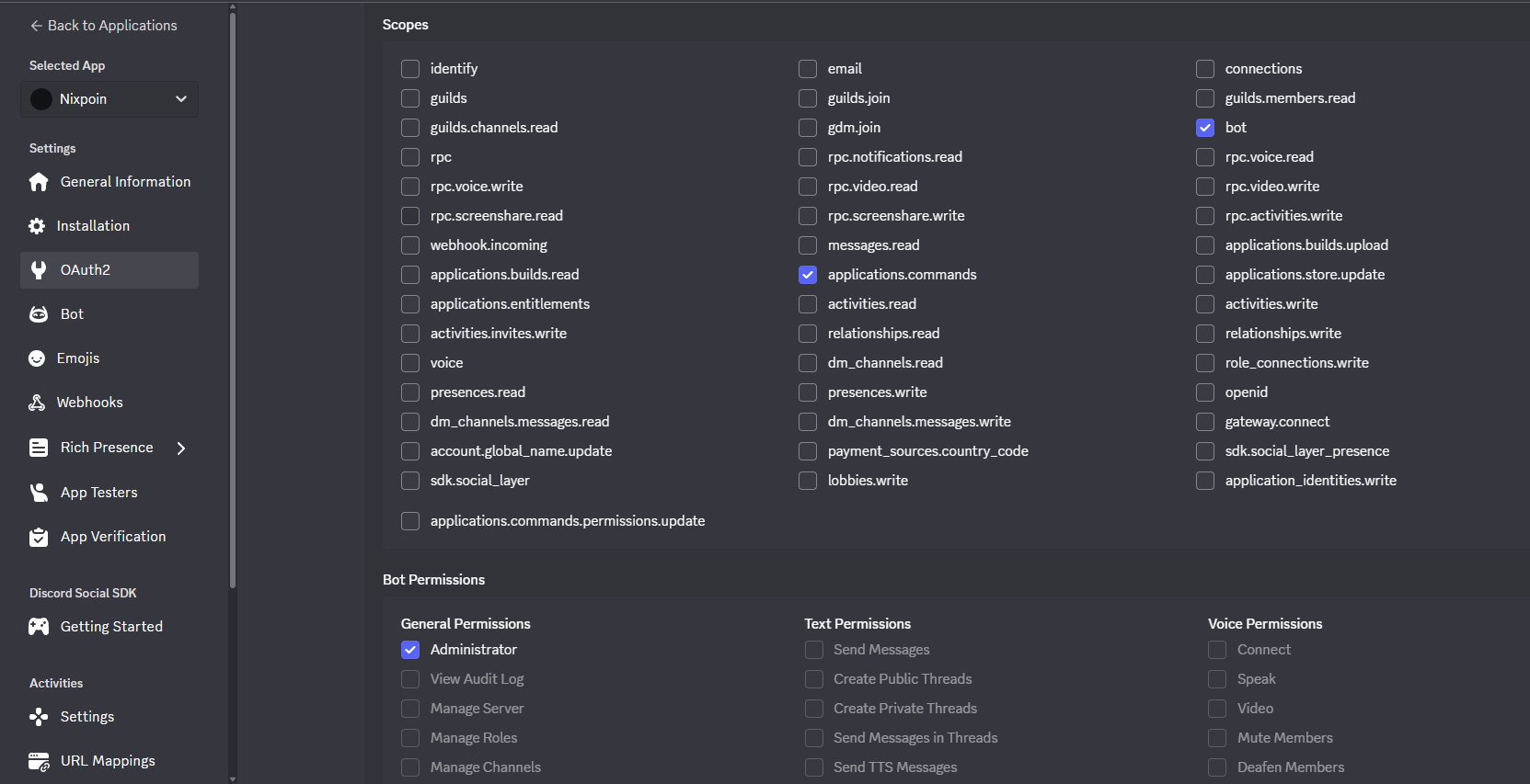 Sedangkan untuk Bot Permissions biar gampang langsung centang saja sebagai Administrator.