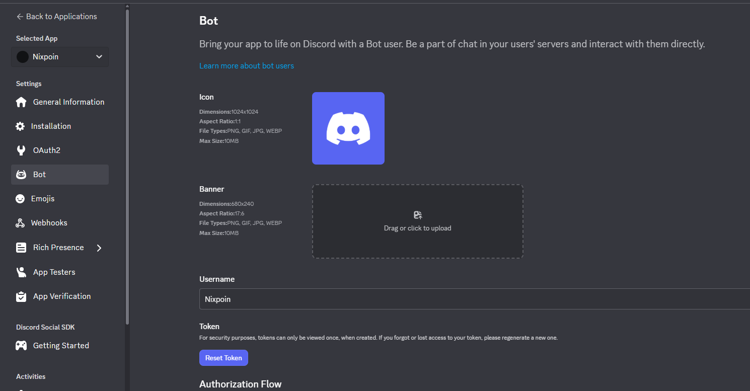 Contoh OAuth2 URL seperti https://discord.com/oauth2/authorize?client_id=1460560520947175642&permissions=0&integration_type=0&scope=applications.commands+bot